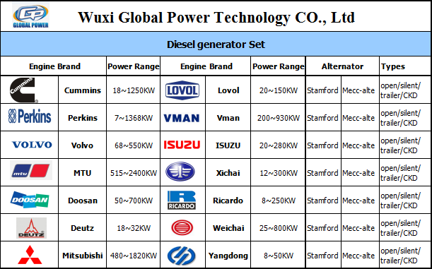 Máy phát điện diesel Deutz, bộ máy phát điện Doosan, bộ máy phát điện diesel của Volvo, máy phát điện Trung Quốc, máy phát điện cách âm, máy phát điện di động vv, công suất từ 9KVA đến 2000KVA.